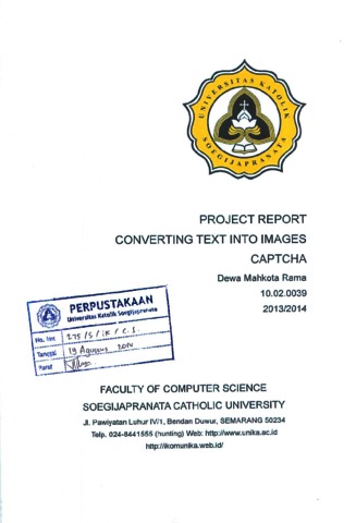 Rama, Dewa Mahkota (2013) CONVERTING TEXT INTO IMAGES CAPTCHA. Other thesis, Unika Soegijapranata Semarang.