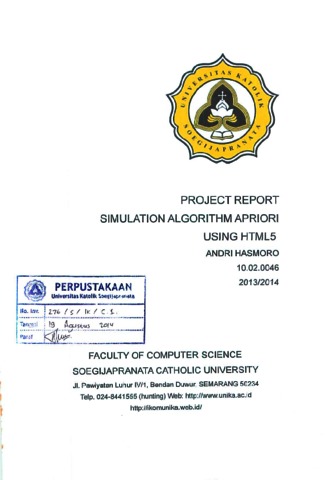 HASMORO, ANDRI (2013) SIMULATION ALGORITHM APRIORI USING HTML5. Other thesis, Unika Soegijapranata Semarang.