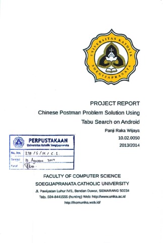 Wijaya, Panji Raka (2013) Chinese Postman Problem Solution Using Tabu Search on Android. Other thesis, Unika Soegijapranata Semarang.