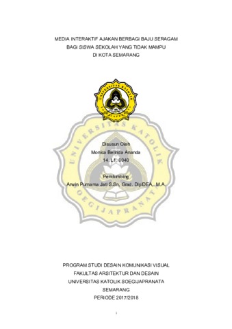 Ananda, Monica Belinda (2018) MEDIA INTERAKTIF AJAKAN BERBAGI BAJU SERAGAM BAGI SISWA SEKOLAH YANG TIDAK MAMPU DI KOTA SEMARANG. Other thesis, Unika Soegijapranata Semarang.