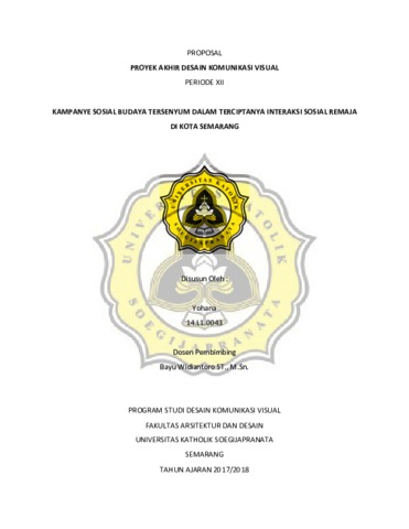 Yohana, Yohana (2018) KAMPANYE SOSIAL BUDAYA TERSENYUM DALAM TERCIPTANYA INTERAKSI SOSIAL REMAJA DI KOTA SEMARANG. Other thesis, Unika Soegijapranata Semarang.