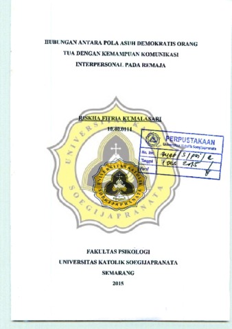 KUMALASARI, RISKHA FITRIA (2015) HUBUNGAN ANTARA POLA ASUH DEMOKRATIS ORANG TUA DENGAN KEMAMPUAN KOMUNIKASI INTERPERSONAL PADA REMAJA. Other thesis, Unika Soegijapranata Semarang.