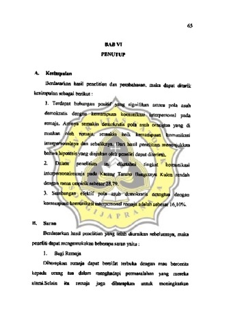 HUBUNGAN ANTARA POLA ASUH DEMOKRATIS ORANG TUA DENGAN KEMAMPUAN KOMUNIKASI INTERPERSONAL PADA REMAJA