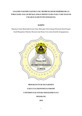 Kusuma, Alit Aditia Mustika (2018) ANALISIS FAKTOR-FAKTOR YANG MEMPENGARUHI KEBERHASILAN WIRAUSAHA DALAM MENJALANKAN BISNIS USAHA PADA TAHU BASO DI UNGARAN KABUPATEN SEMARANG. Other thesis, Unika Soegijapranata Semarang.