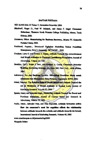 Penelitian yang berjudul "Analisis Pengaruh Sikap Konsmnen Terhadap Merek Dan Keinginan Untuk Membeli (Studi Kasus Pada Produk Jamu Tolak Angin Sido Muncul )" ini bertujuan untuk menguji hipotesis dan model yang telah dibangun oleh Spears and Singh. Pengujian dilakukan untuk menje1askan (1) apakah pemsaan positifberpengaruh secara positifkepada sikap terbadap iklan (2) apakah perasaan negatif berpengaruh secara negatif kepada sikap terbadap iklan (3) apakah perasaan positif berpengaruh langsung seeara positif kepada sikap terbadap merek (4) apakah perasaan negatif berpengaruh langsung seeara negatif kepada sikap terbadap merek (5) apakah sikap terbadap ikIan berpengaruh secara positifkepada sikap terhadap merek (6) apakah sikap terbadap merek berpengaruh positif terbadap keinginan untuk membeli pada produk Jamu Tolak Angin Sido Muncul. Penelitian ini dilaJenkan pada respoDdeii g belmn pemah mengkonsumsi Jamu Tolak Angin Sido Muncul Damun ~ melihat atau mendengar iklan Jamu Tolak Angin Sido Muncul di meaia iklan. Sampel ditetapkan dengan accidental sampling beJjumlah 100 orang. MOdel penelitian menunuskan lima variabel yaitu (1) Perasaan Positit: (2) Perasaan NegatU: (3) Sikap Terbadap Ilclan, (4) Sikap Terbadap Merek. (5) Keinginan Membeli Alat analisis yang digunakan dalam penelitian ini adalah SEM (Structural Eq]lation Modelling} dengan AMOS (Analysis o/Moment Structure) . Hasil dari penelitian ini menunjukkan bahwa (1) penpaan positif tidak berpengaruh secara posjtif kepada sikaP te~p iklan (2) ~ negatif tidak berpengaruh seeara negatifkepada sikap terhlitlap iklan (3) perasaan positiftidak berpen~ langsung secara positif kepada sikap terbadap merek (4) pqasaan negatif tidak ~garUh Iangsung secara negatif kepada sik8p terbadap merek (5) sikap temadap iIdan tidak berpengaruh secara positif kepada sikap temadap merek (6) sikap terbadap merek be~~ positif terbadap keing!nan untuk membeli pada produk Jamu ToJak Angin Sido Muncu1.