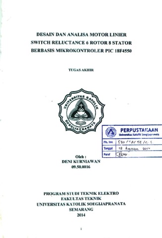 KURNIAWAN, DENI (2014) DESAIN DAN ANALISA MOTOR LlNIER SWITCH RELUCTANCE 6 ROTOR 8 STATOR BERBASIS MIKROKONTROLER PIC 18114550. Other thesis, Unika Soegijapranata Semarang.