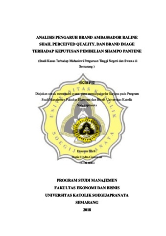 Gunawan, Daniel Indra (2018) ANALISIS PENGARUH BRAND AMBASSADOR RALINE SHAH, PERCEIVED QUALITY, DAN BRAND IMAGE TERHADAP KEPUTUSAN PEMBELIAN SHAMPO PANTENE. Other thesis, Unika Soegijapranata Semarang.