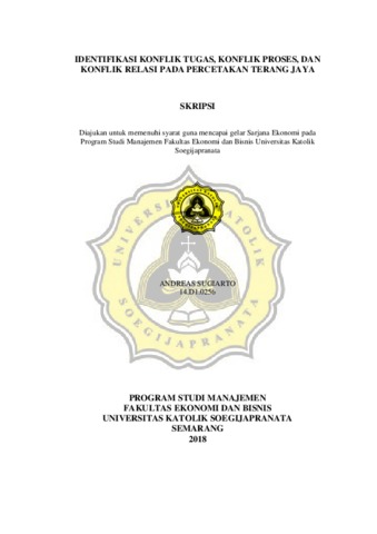 SUGIARTO, ANDREAS (2018) IDENTIFIKASI KONFLIK TUGAS, KONFLIK PROSES, DAN KONFLIK RELASI PADA PERCETAKAN TERANG JAYA. Other thesis, Unika Soegijapranata Semarang.