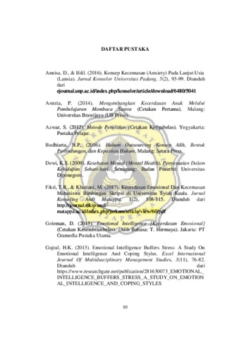 GONCALVES, MARIS STELA ABRINA RATRI FELNER (2018) HUBUNGAN ANTARA KECERDASAN EMOSIONAL DENGAN KECEMASAN MENGHADAPI MASA DEPAN PADA KARYAWAN OUTSOURCING. Other thesis, Unika Soegijapranata Semarang.