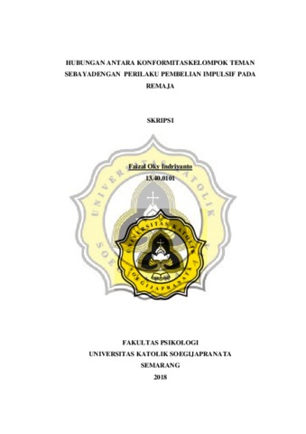 Indriyanto, Faizal Oky (2018) HUBUNGAN ANTARA KONFORMITASKELOMPOK TEMAN SEBAYADENGAN PERILAKU PEMBELIAN IMPULSIF PADA REMAJA. Other thesis, Unika Soegijapranata Semarang.