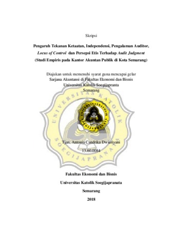 Dwiariyani, Tjan, Antonia Candrika (2018) Pengaruh Tekanan Ketaatan, Independensi, Pengalaman Auditor, Locus of Control dan Persepsi Etis Terhadap Audit Judgment (Studi Empiris pada Kantor Akuntan Publik di Kota Semarang). Other thesis, Unika Soegijapranata Semarang.