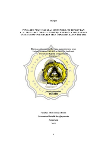 Suwandi, Monica (2018) PENGARUH PENGUNGKAPAN SUSTAINABILITY REPORT DAN KUALITAS AUDIT TERHADAP KINERJA KEUANGAN PERUSAHAAN YANG TERDAFTAR DI BURSA EFEK INDONESIA TAHUN 2012-2016. Other thesis, Unika Soegijapranata Semarang.