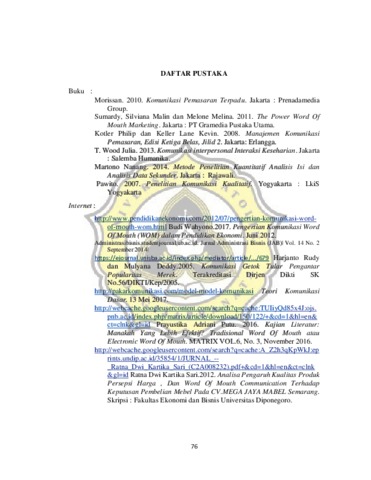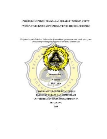 Valensia, Valensia (2018) PROSES KOMUNIKASI PEMASARAN MELALUI “WORD OF MOUTH (WOM)”: STUDI KASUS KONSUMEN LA’DIVES PHOTO AND DESIGN. Other thesis, Unika Soegijapranata Semarang.