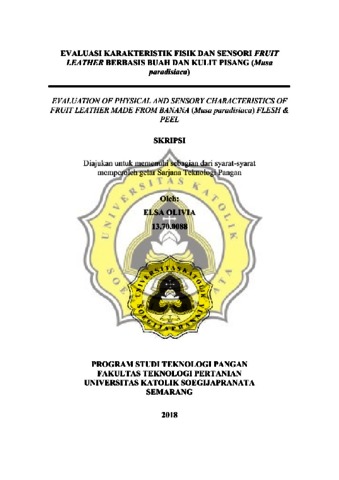 OLIVIA, ELSA (2018) EVALUATION OF PHYSICAL AND SENSORY CHARACTERISTICS OF FRUIT LEATHER MADE FROM BANANA (Musa paradisiaca) FLESH & PEEL. Other thesis, Unika Soegijapranata Semarang.