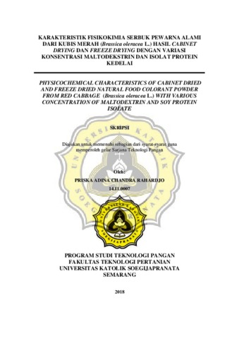 RAHARDJO, PRISKA ADINA CHANDRA (2018) PHYSICOCHEMICAL CHARACTERISTICS OF CABINET DRIED AND FREEZE DRIED NATURAL FOOD COLORANT POWDER FROM RED CABBAGE (Brassica oleracea L.) WITH VARIOUS CONCENTRATION OF MALTODEXTRIN AND SOY PROTEIN ISOLATE. Other thesis, Unika Soegijapranata Semarang.