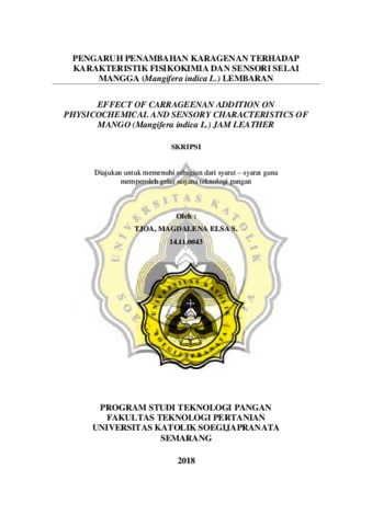 ELSA S., TJOA, MAGDALENA (2018) EFFECT OF CARRAGEENAN ADDITION ON PHYSICOCHEMICAL AND SENSORY CHARACTERISTICS OF MANGO (Mangifera indica L.) JAM LEATHER. Other thesis, Unika Soegijapranata Semarang.