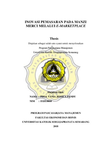 PANDY, PHOA VANIA JESSICA (2018) INOVASI PEMASARAN PADA MANZI MERCI MELALUI E-MARKETPLACE. Other thesis, Unika Soegijapranata Semarang.