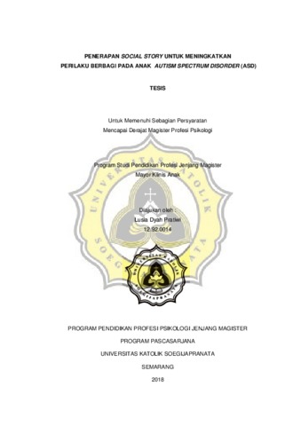 Pratiwi, Lusia Dyah (2018) PENERAPAN SOCIAL STORY UNTUK MENINGKATKAN PERILAKU BERBAGI PADA ANAK AUTISM SPECTRUM DISORDER (ASD). Other thesis, Unika Soegijapranata Semarang.