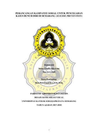 Ivana, Claudia Dika (2018) PERANCANGAN KAMPANYE SOSIAL UNTUK PENCEGAHAN KASUS BUNUH DIRI DI SEMARANG (SUICIDE PREVENTION). Other thesis, Unika Soegijapranata Semarang.