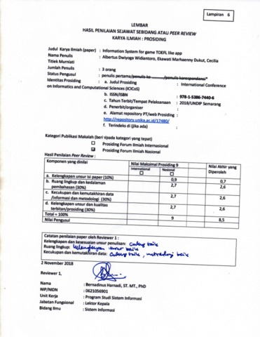 WIDIANTORO, ALBERTUS DWIYOGA and DUKUT, EKAWATI MARHAENNY and MURNIATI, CECILIA TITIEK Information System for Game TOEFL like App. International Conference on Informatics and Computational Sciences (ICICoS).