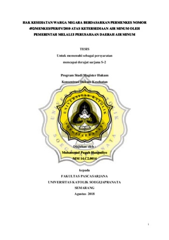 Hangudiyo, Muhammad Puguh (2018) HAK KESEHATAN WARGA NEGARA BERDASARKAN PERMENKES NOMOR 492/MENKES/PER/IV/2010 ATAS KETERSEDIAAN AIR MINUM OLEH PEMERINTAH MELALUI PERUSAHAAN DAERAH AIR MINUM. Other thesis, Unika Soegijapranata Semarang.