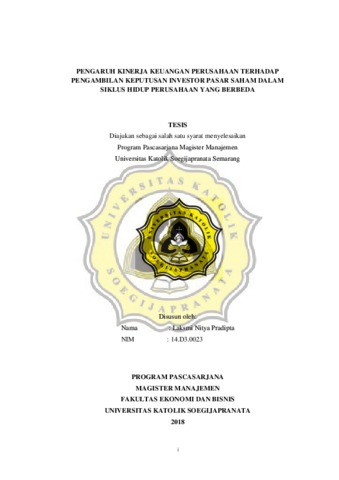 Pradipta, Laksmi Nitya (2018) PENGARUH KINERJA KEUANGAN PERUSAHAAN TERHADAP PENGAMBILAN KEPUTUSAN INVESTOR PASAR SAHAM DALAM SIKLUS HIDUP PERUSAHAAN YANG BERBEDA. Other thesis, Unika Soegijapranata Semarang.