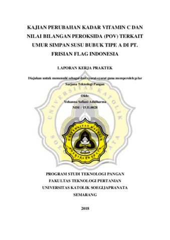Adidharma, Yohanna Sofiani KAJIAN PERUBAHAN KADAR VITAMIN C DAN NILAI BILANGAN PEROKSIDA (POV) TERKAIT UMUR SIMPAN SUSU BUBUK TIPE A DI PT. FRISIAN FLAG INDONESIA. Project Report. Unika Soegijapranata Semarang, Semarang.