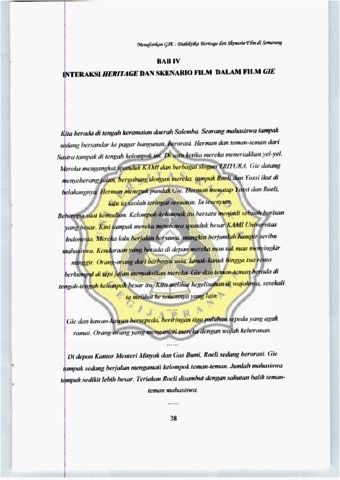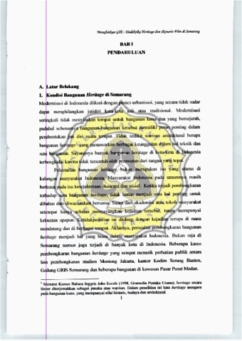Film GI menyimpan sebuah wacana lain mengenai revitalisasi dan konservasi herilage. Hal ini d uktikan dengan penggunaan bangunan heritage - yang bernilai sejarah maupun tidak ber ilai sejarah - untuk lokasi syuting. Dapat dikatakan, di sinilah penggabungan secara si ematografis aspek arsitektur dan litarutur. Selama proses syuting, bangunan heritage ihidupkan kembali melalui berbagai kegiatan perfilman. Jakarta telah menjelma menjadi ota yang modern dengan banyak sin'! I bercirikan modernitas. Situas i Jakarta ketika fi 111 ini dibuat, sekitar tahu 00 I hingga 002 dian ggap tidak mampu lagi merepres ntasikan fi sik kota te~sebut pada taillm 1950-an hmgga I 960-an. Bangunan heritage dan Kota Semaraog pada an!fle tertcntu dianggap oleh Ib" maker mampu merepres ntasikan Jakarta tahun 1950-an I 960-an, s suai selling ' aktu yang diinginkan skenario. Setelah film \'lIE sukses mengusung tema masa lalu sebagai selling waktu film, disusul 1m lain yang memanraatkan suasana nostalgia Kota Semarang cbagai sellingnya yakni film The Pholograph. edua film ini menunjukkan keterlibatan ba.ngunan dan situs her lage dal am proses pefnbuatan lilm. Dari media seperti tilm milah, ang ringan dan me bumi wacana revitali sasi dan "onser si bangunan herilage dikcmu!\akan, karena s lama ini segala sq uatu yang berbau seja(ah dan masa lalu di anggap metnbebm!! sehingga perlu dibuang jauh-jauh. Anggapan i{li terbukti dengan pem gkaran bangunan-bangunan heritage di Indonesia walaupun sudah ada Undang -undang nomor 5 Tnhun 1995 tentang perlindungan cagar Budaya. Tujuan dari penelitian ini adalah untuk menemukan bagaimana aimana film dan bangunan heritage saling menghi upi karen danya proses syuting. Dengan demikian bukti adanya proses interaksi antara keduanya bisa menjadi sebuah wacana baru untuk mendukung konservasi dan revitalisasi bangunan heritage.