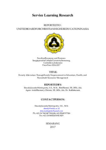 Rahutami, Angelina Ika and Christie, agnes and Matitaputty, Shandy and Hastuti, Rini (2017) Poverty Alleviation Through Family Empowerment in Education, Health, and Household. In: Universitas Katolik Soegijapranata.