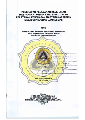 SUDJADI, ANTHONY (2010) PENERAPAN PELAYANAN KESEHATAN MASYARAKAT MISKIN YANG IDEAL DALAM PELAYANAN KESEHATAN MASYARAKAT MISKIN MELALUI PROGRAM JAMKESMAS. Masters thesis, Unika Soegijapranata Semarang.