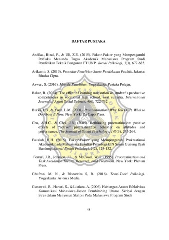 RACHMAWATI, DIAN (2018) HUBUNGAN ANTARA MOTIVASI BELAJAR DENGAN PROKRASTINASI AKADEMIK PADA MAHASISWA. Other thesis, Unika Soegijapranata Semarang.