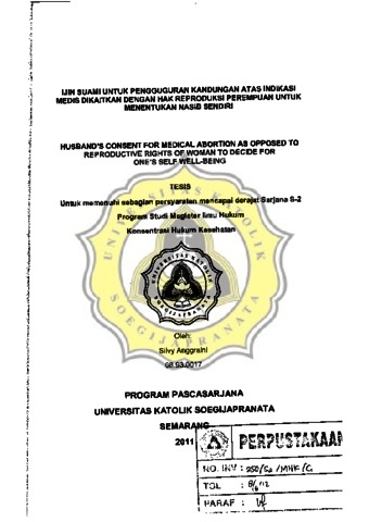 Anggraini, Silvy (2011) IJIN SUAMI UNTUK PENGGUGURAN KANDUNGAN ATAS INDIKASI MEDIS DIKAITKAN DENGAN HAK REPRODUKSI PEREMPUAN UNTUK MENENTUKAN NASIB SENDIRI. Masters thesis, Unika Soegijapranata Semarang.