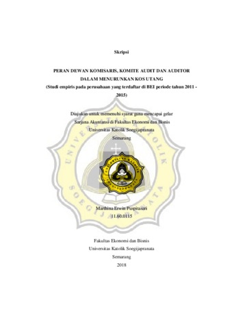 Puspitasari, Marthina Erwin (2018) PERAN DEWAN KOMISARIS, KOMITE AUDIT DAN AUDITOR DALAM MENURUNKAN KOS UTANG (Studi Empiris Pada Pewrusahaan yang terdaftar di BEI periode Tahun 2011-2015). Other thesis, Unika Soegijapranata Semarang.