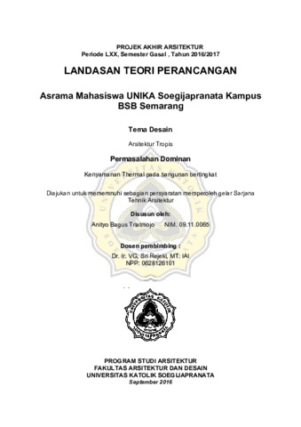 Triatmojo, Anityo Bagus (2018) Asrama Mahasiswa UNIKA Soegijapranata Kampus BSB Semarang. Other thesis, Unika Soegijapranata Semarang.