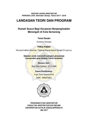 Sulistyo, Bogi Okka (2018) Rumah Susun Bagi Karyawan Berpenghasilan Menengah di Kota Semarang. Other thesis, Unika Soegijapranata Semarang.