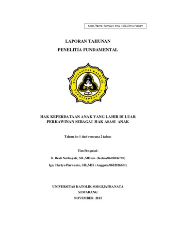 NURHAYATI, BERNADETA RESTI and PURWANTO, IGNATIUS HARTYO (2015) HAK KEPERDATAAN ANAK YANG LAHIR DI LUAR PERKAWINAN SEBAGAI HAK ASASI ANAK (laporan tahun 1 - 2015). Project Report. Unika Soegijapranata, Semarang. (Unpublished)