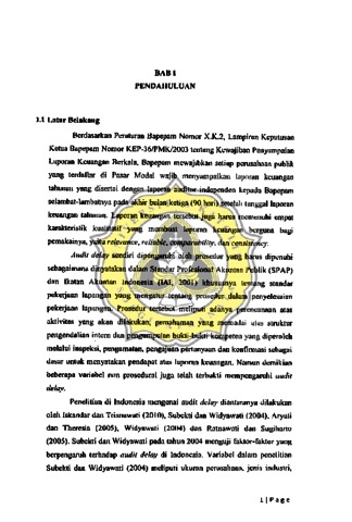 Wijaya, Melina (2014) FAKTOR-FAKTOR YANG MEMPENGARUHI A UDIT DELAY (Studi Pada Perusahaan Scktor Keuangan di BEl tahun 2010). Other thesis, Unika Soegijapranata Semarang.