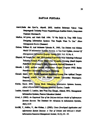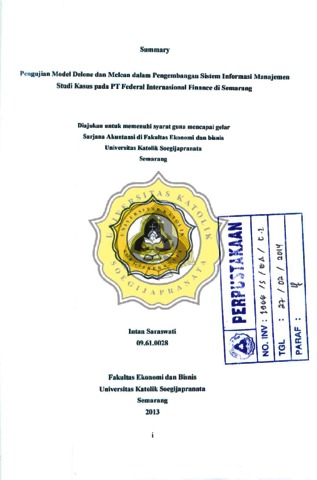 Saraswati, Intan (2013) Pongujian Model Delone dan Mclean dalam Pengemb.ngan Sistem InformsSi Man.jemen Studi Kasus pada PT Feder.'lnternasiona' Finance di Semarang. Other thesis, Unika Soegijapranata Semarang.