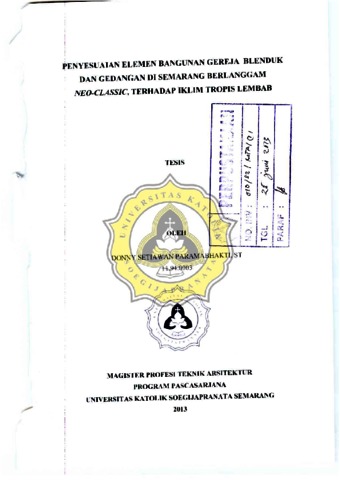 Paramabhakti, Donny Setiawan (2013) PENYESUAIAN ELEMEN BANGUNAN GEREJA BLENDUK DAN GEDANGAN DI SEMARANG BERLANGGAM NED-CLASSIC, TERHADAP IKLIM TROPIS LEMBAB. Other thesis, Unika Soegijapranata Semarang.
