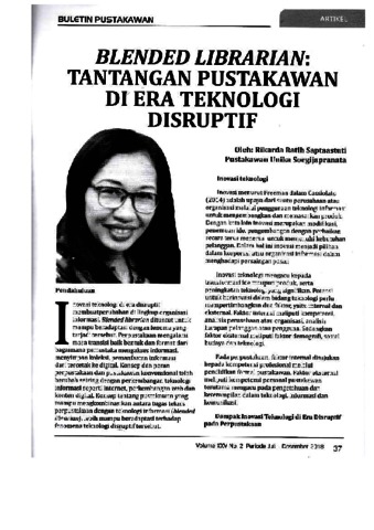 SAPTAASTUTI, RIKARDA RATIH (2018) Blended Librarian: Tantangan Pustakawan di Era Teknologi Disruptif. BULETIN PUSTAKAWAN, XXV (2). ISSN 1978-2926