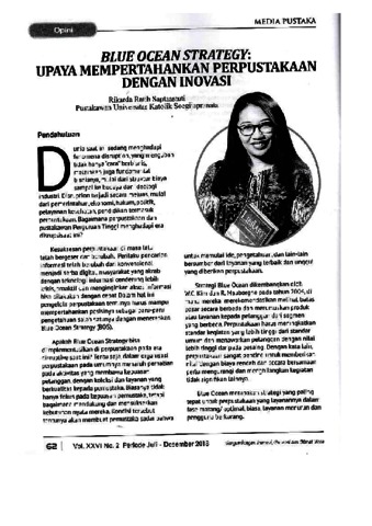 SAPTAASTUTI, RIKARDA RATIH (2018) Blue Ocean Strategy: Upaya Mempertahankan Perpustakaan Dengan Inovasi. MEDIA PUSTAKA, XXVI (2). ISSN 1979-4762