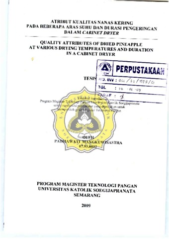 Mangkuwisastra, Padmawati (2009) ATRIBUT KUALITAS NANAS KERING PADA BEBERAPA ARAS SUHU DAN DURASI PENGERINGAN DALAM CABINET DRYER. Masters thesis, Unika Soegijapranata Semarang.