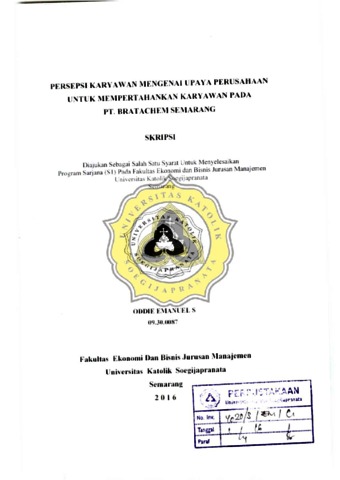 Emanuel S, Oddie (2016) PERSEPSI KARYAWAN MENGENAI UPAYA PERUSAHAAN UNTUK MEMPERTAHANKAN KARYAWAN PADA PT. BRATACHEM SEMARANG. Other thesis, UNIKA SOEGIJAPRANATA SEMARANG.