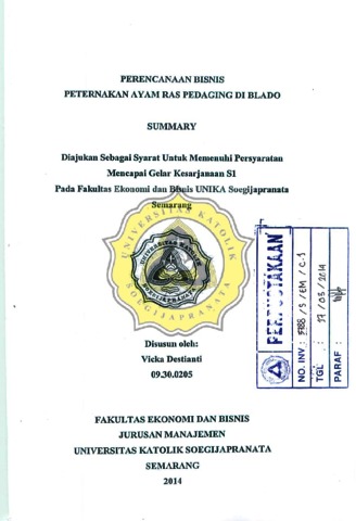 Destianti, Vicka (2014) PERENCANAAN BISNIS PETERNAKAN AYAM RAS PEDAGING DI BLADO. Other thesis, UNIKA SOEGIJAPRANATA SEMARANG.