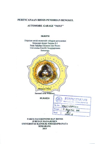 Wibowo, Samuel Arie (2015) PERENCANAAN BISNIS PENDIRlAN BENGKEL AUTOMOBIL GARAGE "NOXT". Other thesis, UNIKA SOEGIJAPRANATA SEMARANG.