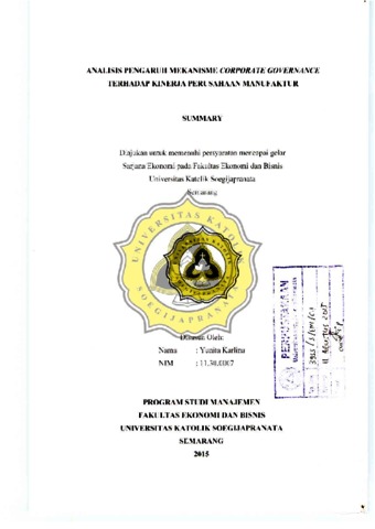 Karlina, Yunita (2015) ANALISIS PENGARUH MEKANISME CORPORATE GOVERNANCE TERHADAP KINERJA PERCSAHAAN MANUFAKTUR. Other thesis, UNIKA SOEGIJAPRANATA SEMARANG.