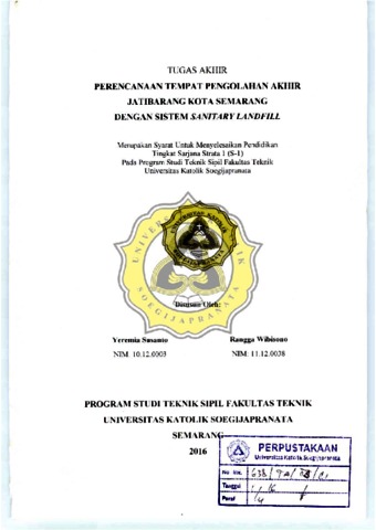 Susanto, Yeremia and Wibisono, Rangga (2016) PERENCANAAN TEMPAT PENGOLAHAN AKHIR JATIBARANG KOTA SEMARANG DENGAN SIMTEM SANITARY LANDFILL. Other thesis, UNIKA SOEGIJAPRANATA SEMARANG.