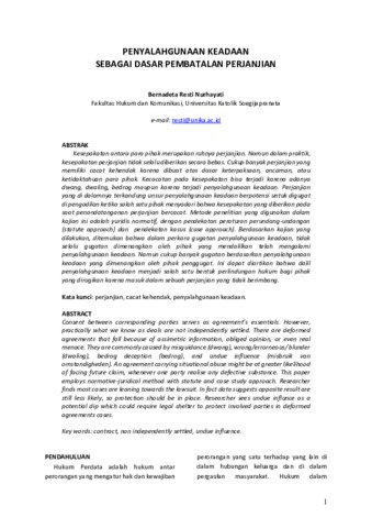 NURHAYATI, BERNADETA RESTI (2019) PENYALAHGUNAAN KEADAAN SEBAGAI DASAR PEMBATALAN PERJANJIAN. Jurnal Komunikasi Hukum, 5 (1). ISSN 2407-4276