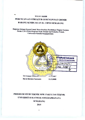 Goenardi, Tri Atmaja and Suswanto, David Herman (2015) PERENCANAAN STRUKTUR GEDUNG PUSAT GROSIR BARANG SENIDI JALAN Dr. CIPTO SEMARANG. Other thesis, UNIKA SOEGIJAPRANATA SEMARANG.