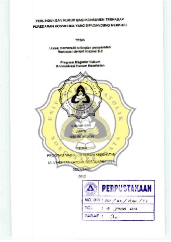 JULIANA, - (2012) PERLINDUNGAN HUKUM BAGI KONSUMEN TERHADAP PEREDARAN KOSMETIKA YANG MENGANDUNG MERKURI. Masters thesis, Unika Soegijapranata Semarang.